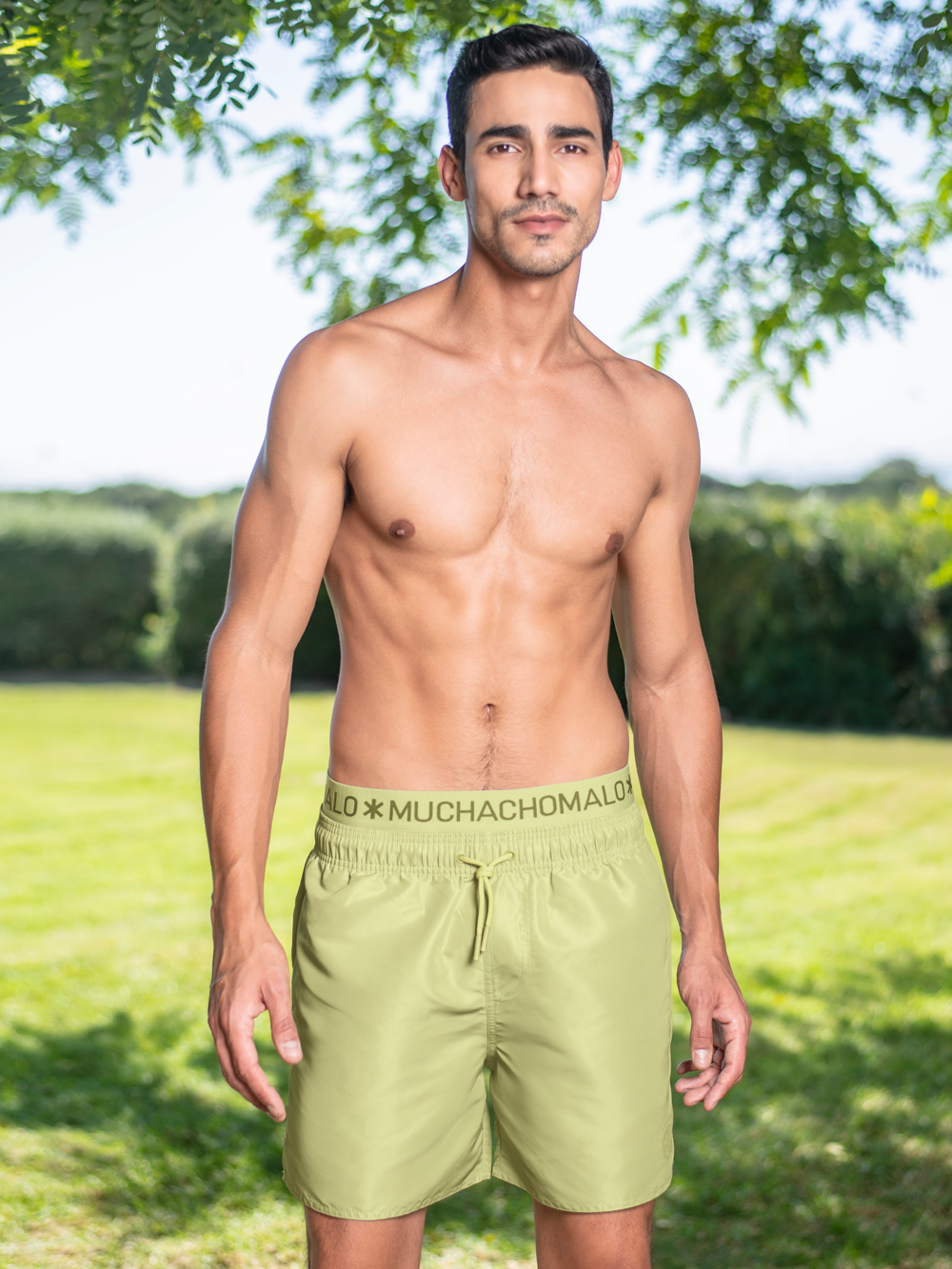 Men Swimming trunks green + free microfiber boxer shorts